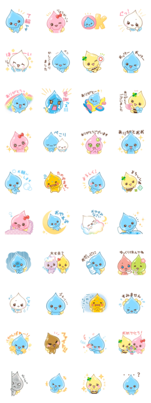 雨の妖精しずくちゃんとなかまたちのスタンプが新登場★ 表情豊かなデザインで毎日使いやすい♪ あなたの気持ちを楽しくお届け!くーりあ より発売