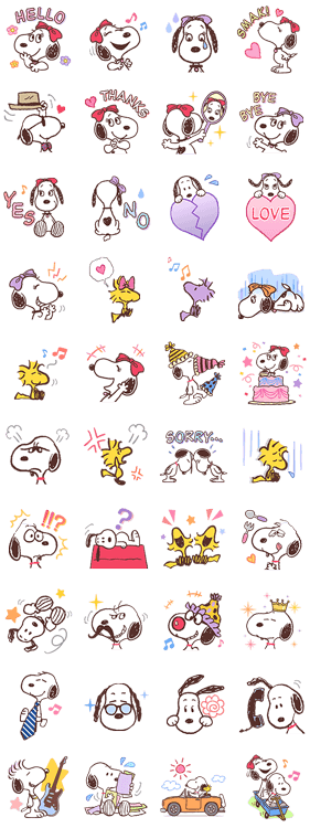 赤・ピンク・紫色が多めのスヌーピーのスタンプです。かわいらしいスタンプをラインに飾って癒されましょう!