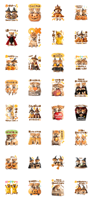 魔法使いわんこが秋をお届け♡ハロウィンも盛りだくさんの秋の柴犬スタンプです。BIGサイズなのでインパクト大‼️文字なしスタンプもあるのでアレンジにも♪犬♡ ※このスタンプはトークルームで大きく表示されるBIGスタンプです。ぴよたぬき♡ より発売