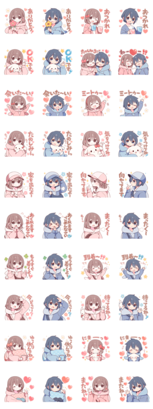大好きな人、大切な人といっしょに使えるスタンプです。リアクションや伝えたい言葉が沢山入っています。友達や恋人、家族との会話、に是非♪ 待ち合わせスタンプ