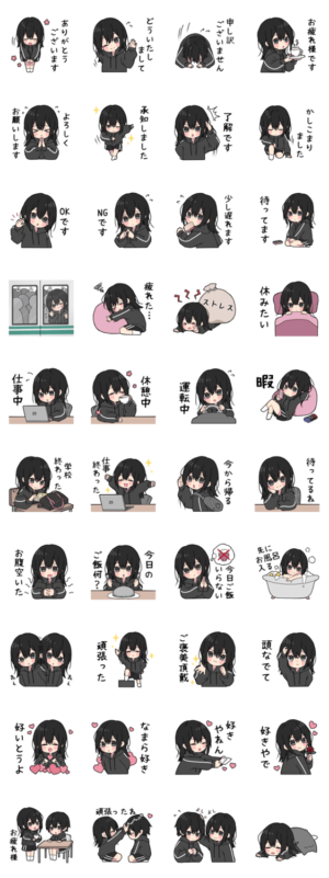 敬語多め!友達、家族、カップル、大切な人と使えるスタンプです!黒パーカーちゃんの第12弾紫月るな より発売