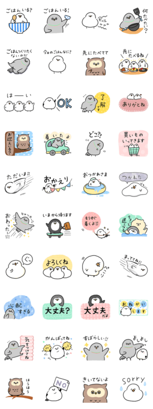 家族 報告 連絡 脱力 面白い シュール ハト はと 鳩 シマエナガ 文鳥 フクロウ ミミズク 北欧 可愛い ほんわか 毎日 日常 挨拶 ネガティブ 五月病 気持ち伝わる ママ友