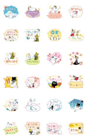 ムーミンたちが、ふきだしの中で!外で!上で!楽しく動き回るスタンプが登場♪ 使いやすい表現を集めた、これ一つで気軽にお返事ができる万能スタンプです。