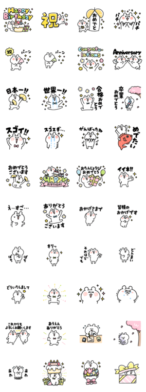 「お祝いスタンプ」特集に参加♪合格おめでとう、お誕生日おめでとう、ハッピーバースデー、アニバーサリーなど、いろいろなお祝いシーンで使いやすいスタンプです!my より発売