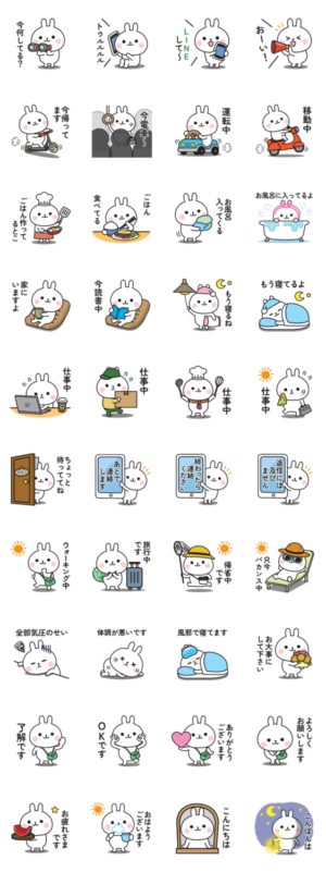 可愛いうさぎさんの連絡用に使える言葉を集めたとっても使いやすいスタンプです♪パン より発売