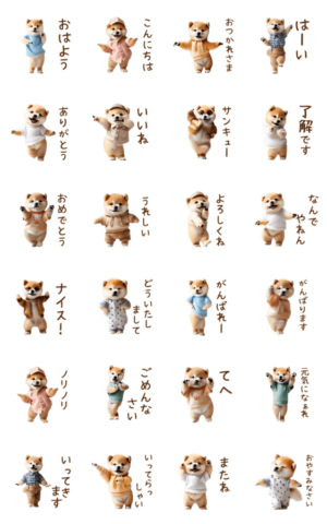 踊らずにはいられない!毎日使えるフレーズを中心にまとめた個性的&心躍るシュールでかわいい子犬達のダンシングわんこ。踊る柴犬/まめしば