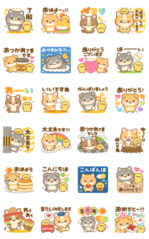 柴犬・チワワ、いろんなわんこが大集合♡かわいく飛び出すカラフルなスタンプです。ぴよたぬき♡ より発売
