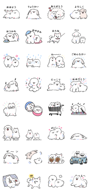 ポメトーン白いふわふわの仲間たち スタンプ画像一覧