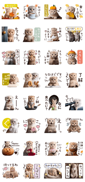 ねこさんの毎日使えるスタンプ♡スコティッシュフォールド・茶トラ・ロシアンブルーなど♪ハロウィン・クリスマス・敬語・よく使う言葉・家族で使える言葉など♪