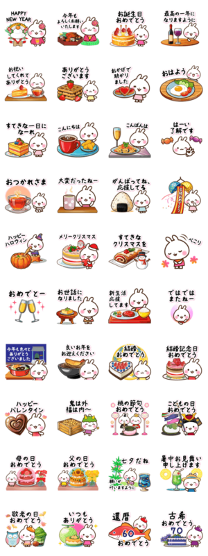 うさぎさん 一年中使える日常お祝い料理 スタンプ画像一覧