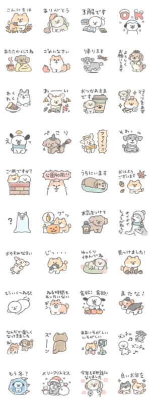 「こんにちは、いぬです」のいぬたちが秋冬のスタンプになって登場! 毎年使える!レッツいぬいぬ!じゅん より発売