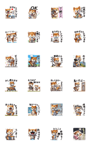柴犬の愛らしい表情で、待ち合わせのやりとりを楽しくスムーズに!愉快で可愛い柴犬スタンプが、遅れそうな時や到着を伝えるのにぴったりです。
