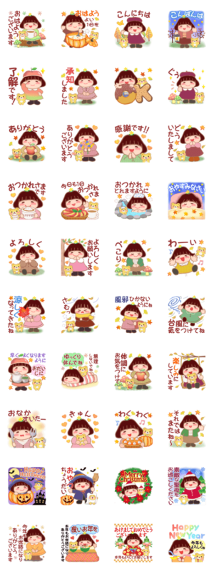 ちょっと太めの女の子「でぶりん」の日常会話、クリスマス、ハロウィン、新年等、秋から冬に使えるスタンプです。めぐみん より発売