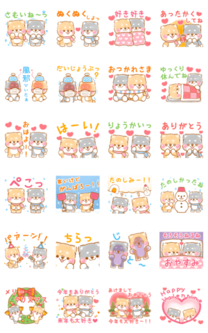 ぽぽんえすのいやしばいぬカップル(癒し柴犬豆しば)年末年始/お正月/ほんわか/クリスマス/あけおめ/ラブラブ/バレンタイン/彼氏彼女/秋冬/夫婦/らぶ/ゆるいやしりーず