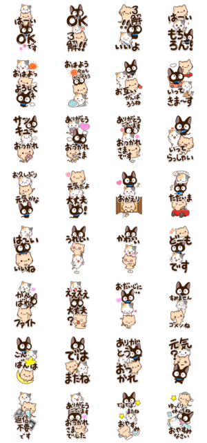 『やさしいクロネコ』『小さいトラネコ』『お茶目な三毛猫』の、ねこたちのBIGスタンプ。大きくビッグで目立ち、毎日楽しくメッセージを送ることができます。【かたこ】 ※このスタンプはトークルームで大きく表示されるBIGスタンプです。かたこ より発売