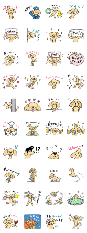 第二弾!トイプードルの男の子の日常言葉を集めました♪ ※こちらのスタンプは「人になりたい犬」の改訂版です。Kazue より発売