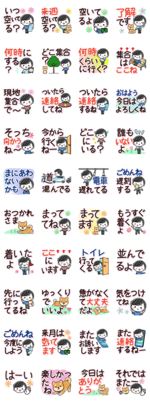 連絡や待ち合わせに便利なスタンプです♪老眼の方やシニア世代の男性も読みやすい☆毎日使える♪春夏秋冬OK!夫/旦那/パパ/彼氏/カップル/家族/夫婦専用/でか文字/芝犬