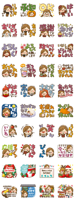 かわいい女の子の秋にピッタリなカラフルデカ文字スタンプです!クリスマス・お正月・年末年始・敬語入り!アグリム より発売