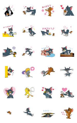 トムとジェリーの動くスタンプ!ケンカするほど仲がいい!そんなトムとジェリー、タフィーや仲間たちとトークを楽しもう♪