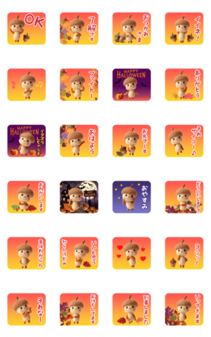 秋冬にピッタリ。可愛いドングリくんが踊ります。紅葉/秋/冬/かわいい/ハロウィン/日常会話/使いやすい/癒しセイコウ より発売