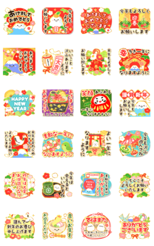 飛出す★ずっと使える明るいお正月スタンプ スタンプ画像一覧