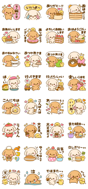 かわいいトイプードル達が色々なスイーツと一緒にメッセージを伝えます♡ぴよたぬき♡ より発売