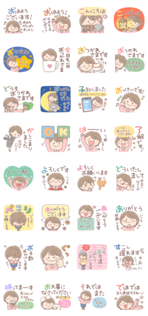 大人ショートのゆるふわ大人女子のスタンプです。当たり障りがない、ふんわり優しい色合い♪ゆるっとした敬語で相手を選ばず使いやすい★