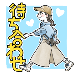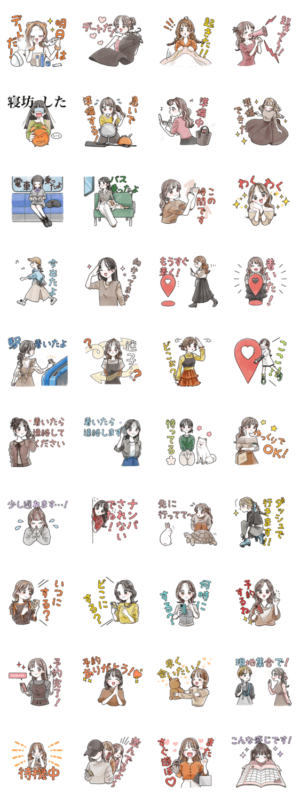 おでかけや待ち合わせ、デートにピッタリな、可愛い女の子スタンプです♪カップルや彼氏、お友達に♪ほこり より発売
