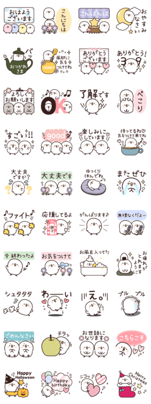 丸いトリたちの使いやすい言葉♡ハロウィンやクリスマスに使える言葉も入っています♪chaco より発売