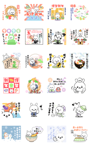 飛び出す!ひねくれうさぎのお正月2025 スタンプ画像一覧