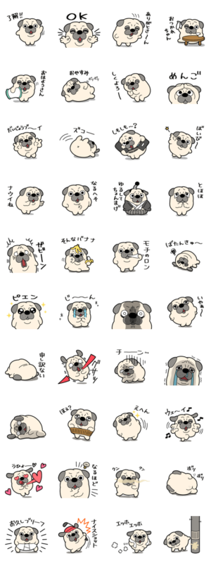パグのおっちゃんの日常スタンプ第二弾♪セイコウ より発売