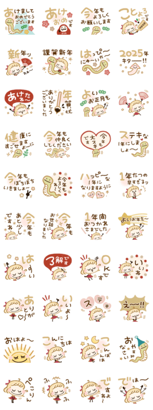 年末年始に大活躍するフレーズ沢山♡ゆるかわいいスタンプです♪小さな幸せ/感謝/新年/お正月あさごぱん より発売