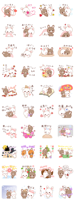 秋冬用♡ラブラブうさぎのカップルスタンプのダウンロードはこちら↓