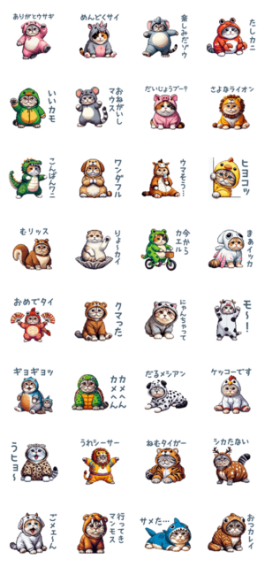 ダジャレ着ぐるみネコ【日常会話・連絡用】 スタンプ画像一覧