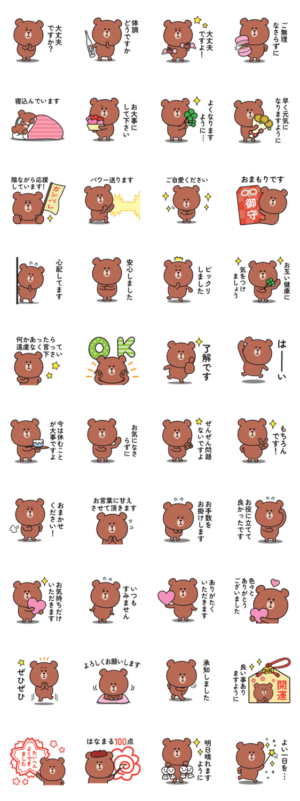 毎日使える♪相手を思いやる気遣い・思いやりが詰まったくまさんの敬語スタンプです。パン より発売