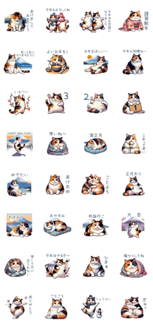 あけおめ三毛猫【ネコ・友達・お正月】 スタンプ画像一覧