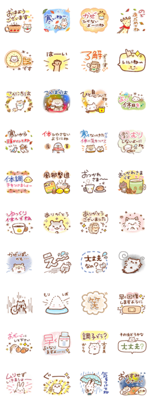 秋~冬にむかう季節に、きづかいの言葉が多く入ったスタンプセットです。 ~秋・冬・日常・寒い日・体調・思いやり~ようこ より発売