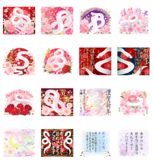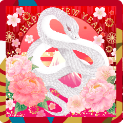 縁起が良く富をもたらすとされている幸運の象徴、白蛇が美しく優美に動くお正月ポップアップスタンプ。牡丹や桜が舞いとてもはなやかで大人の女性にぴったりです!