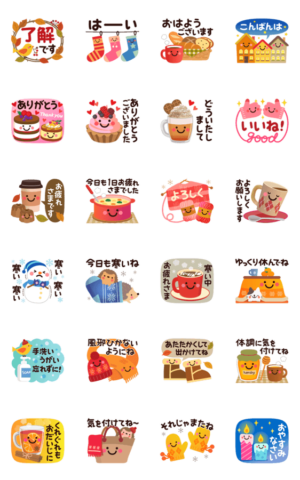 ちょっとだけ大人の子供過ぎない動くスタンプ。冬はもちろん秋から使える嬉しいスタンプ!よく使う言葉が色々あってとっても便利♪