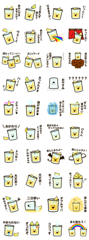 今日もゆるーく飲みまっしょい!お酒は二十歳になってから。でもスタンプは未成年でも使えます。C10 より発売