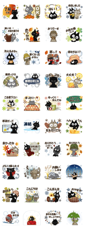 晩秋から冬まで使える黒ねこスタンプです♥まちゃの部屋 より発売