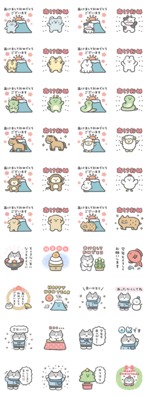 年末年始のご挨拶に! あけおめスタンプ/クリスマス/年末年始スタンプ/冬スタンプ/ゆるかわ/oroninet/