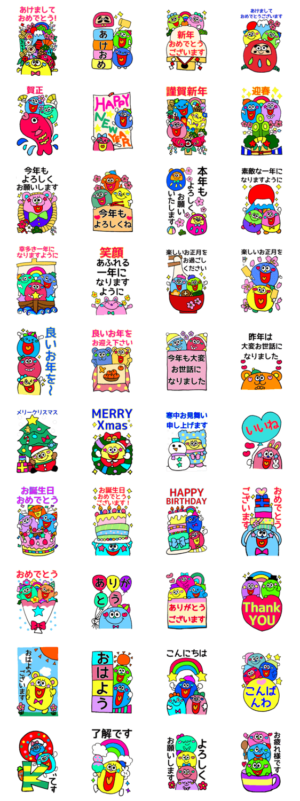 年末年始やお誕生日、クリスマス、お正月などお祝いにぴったりなBIGスタンプ。カラフルで大きい文字。日常会話も!敬語/冬/イベント/大晦日/行事/でか文字/かわいい/年賀状