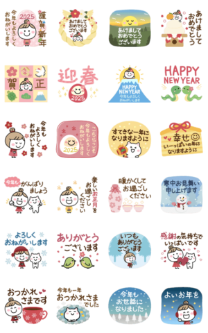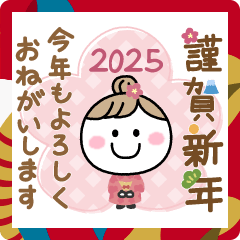 年末年始に使いやすいとびだすスタンプです。大晦日、お正月のご挨拶など。冬/元旦/年賀/巳年/へび年/2025/挨拶/日常/大人/女の子/女子/やさしい/お団子ヘア/飛び出す
