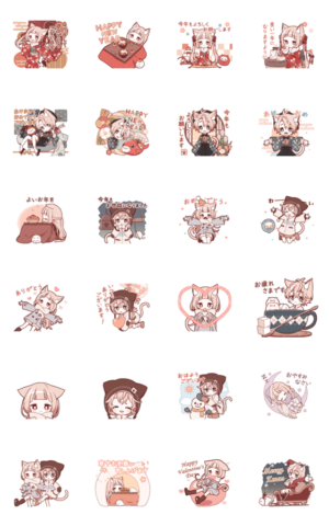 【お正月・冬】飛び出す!ゆるねこ女子&男子 スタンプ画像一覧