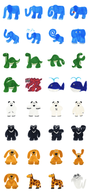 ゾウ、ブラキオサウルス、ティラノサウルス、クジラ、シロクマ、ツキノワグマ、イヌ、キリン、ユーレイ近藤大輔 より発売