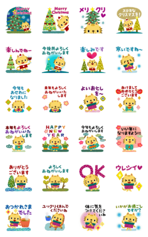 絵本みたいな[とびだす]とらねこXmasお正月 スタンプ画像一覧