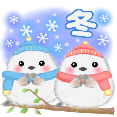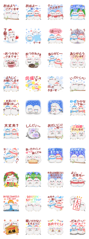 かわいいシマエナガさんの 冬の日常、クリスマス、年末年始、お正月に使えるスタンプです。めぐみん より発売