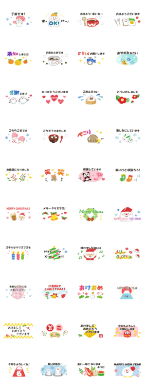 冬に使える幅の狭い小さいサイズのスタンプです!コンパクトでトークを圧迫しない。年賀状代わりにも!クリスマス/寒い/よいお年を/お正月/あけおめ/今年もよろしく