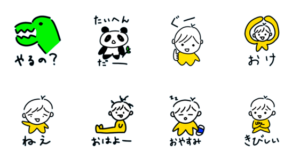 恐竜とボーイたちのかわいいスタンプです♪かわいいスタンプ本舗 より発売